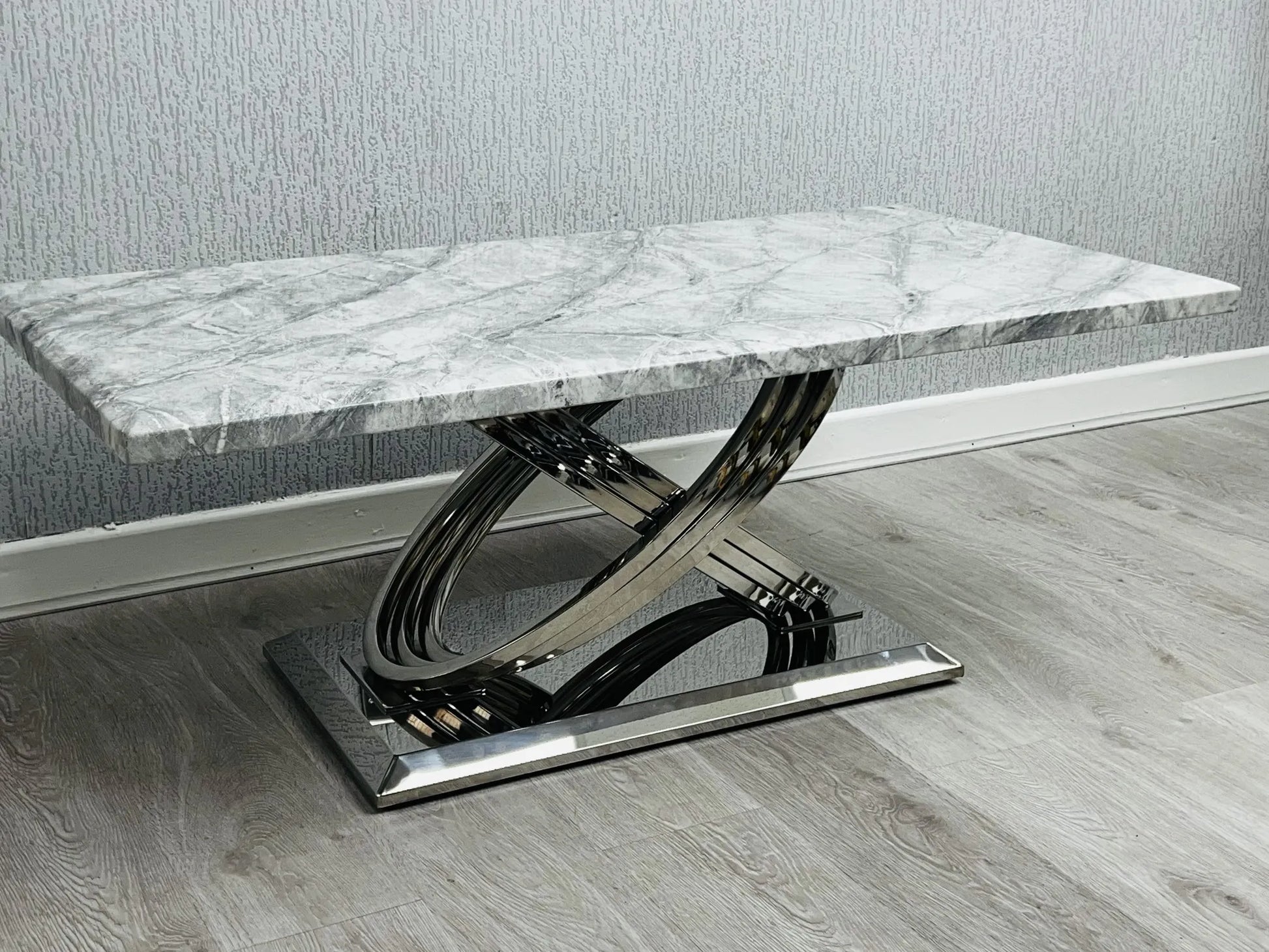 - Grey Marble Top with a stylish Silver Frame — ideal for cool, contemporary spaces