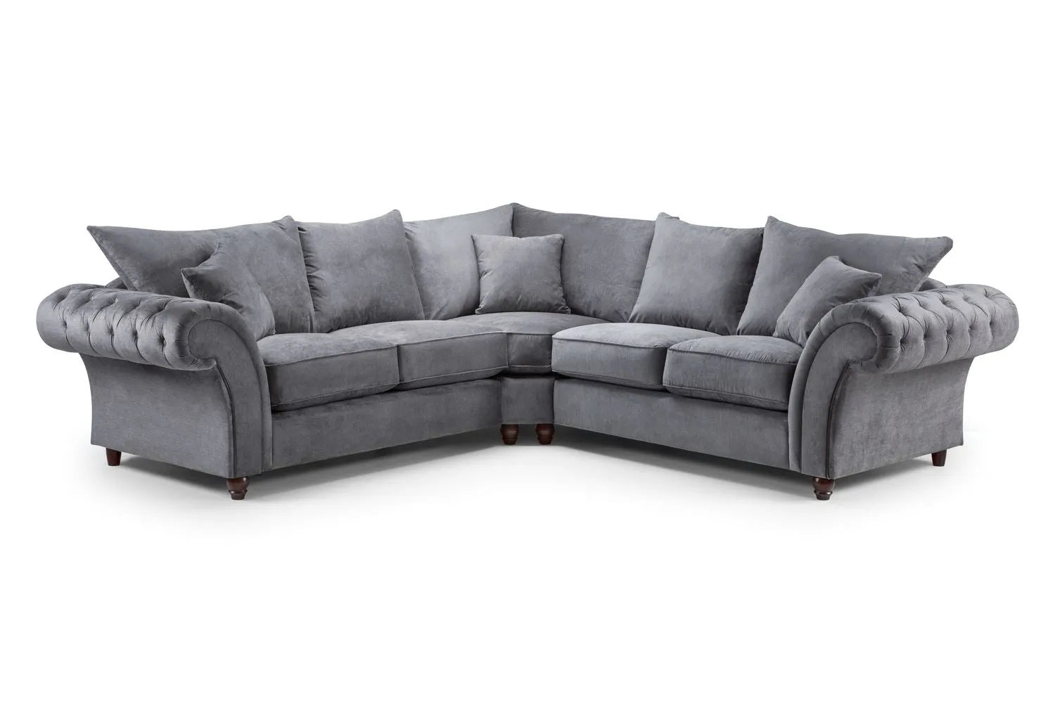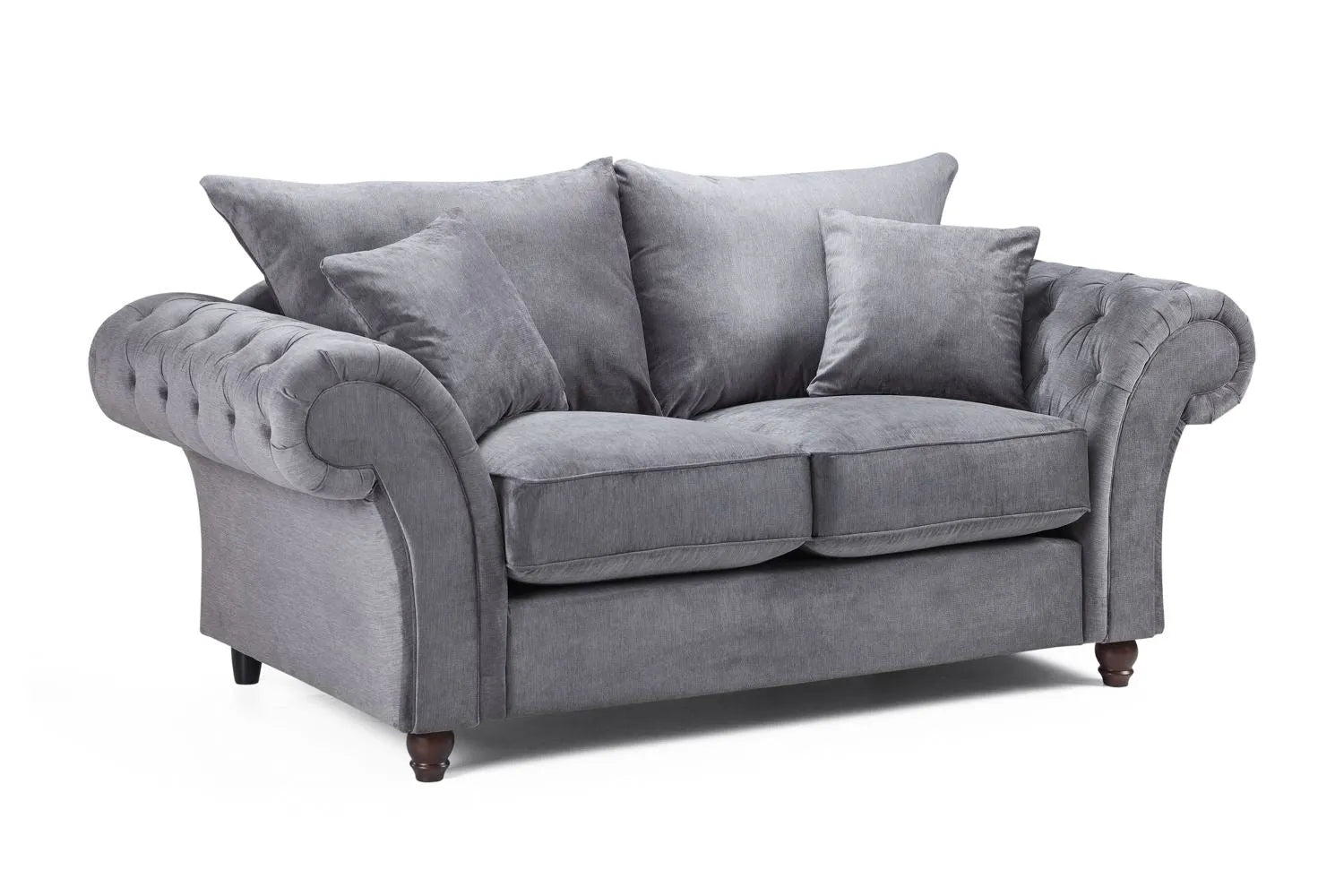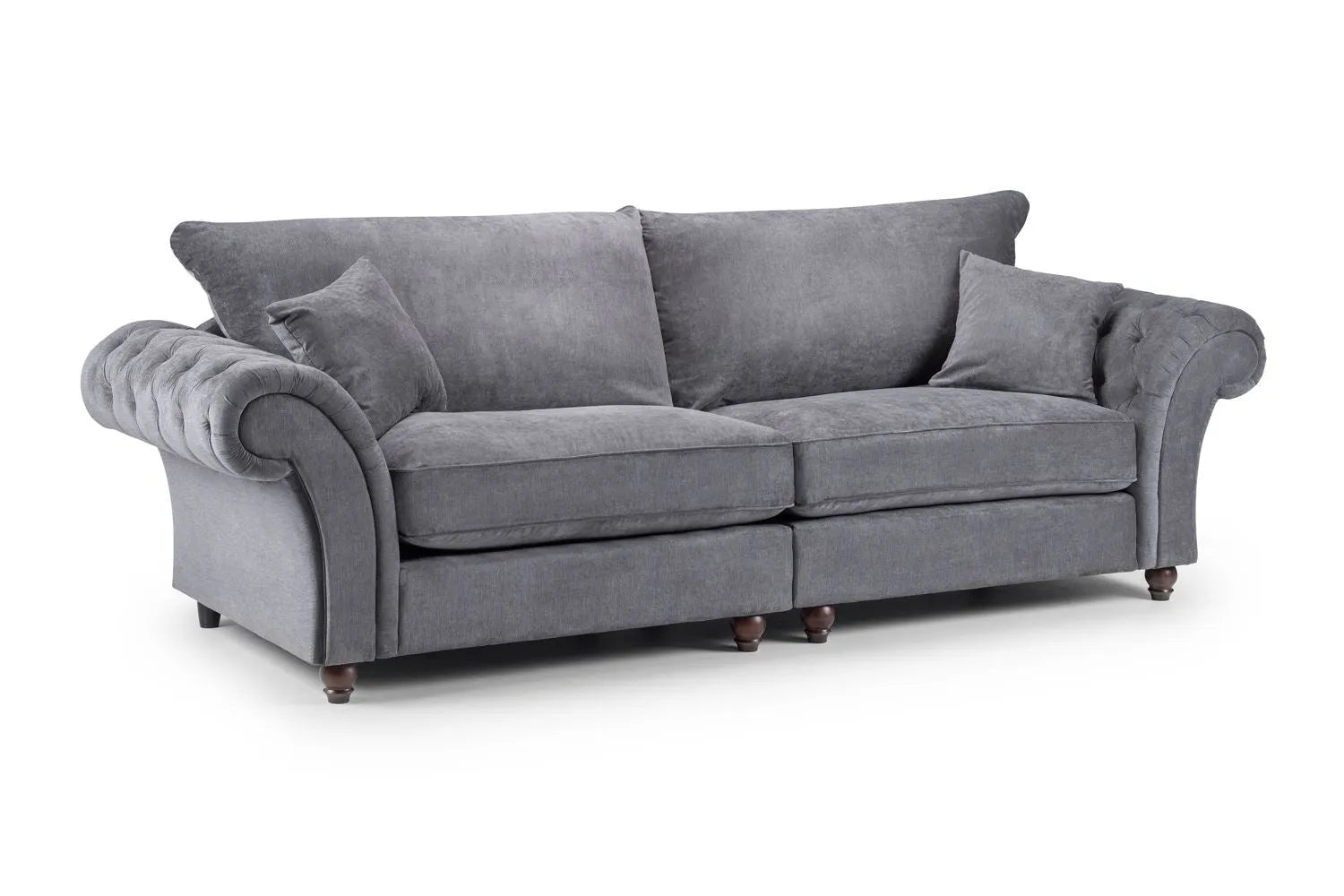 The Windsor Fullback Sofa range brings classic British styling into the heart of your home. Upholstered in a versatile grey fabric, each piece features traditional button-tufted scroll arms, supportive full-back cushions and a timeless silhouette that complements both contemporary and traditional décor.